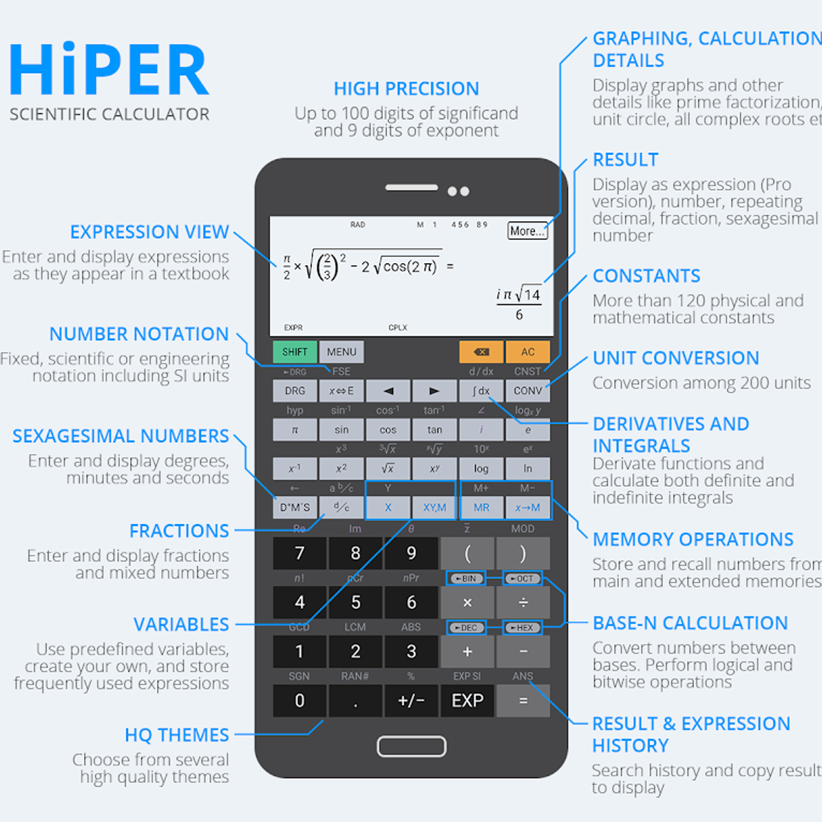 You can use it much like any other clicking the buttons or entering some calculation on your own keyboard - 247944 - and the results appear immediately. HiPER is a powerful scientific calculator app for Android with a clean interface. The calculator has up to 100 digits of significand and 9 digits of exponent.